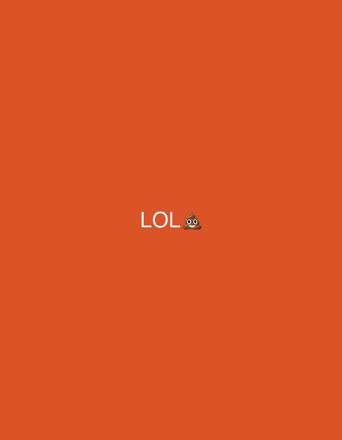 The image displays a solid, uniform orange background. Centered horizontally and slightly above the vertical midline, the white uppercase text "LOL" is present in a sans-serif typeface. Directly to the right of this text, a brown emoji depicting a stylized pile of feces with two small white eyes is visible. No individuals, physical objects, actions, or interactions are depicted. The environment is a digitally rendered plane, with the associated location being in the city of Sofia, Bulgaria.