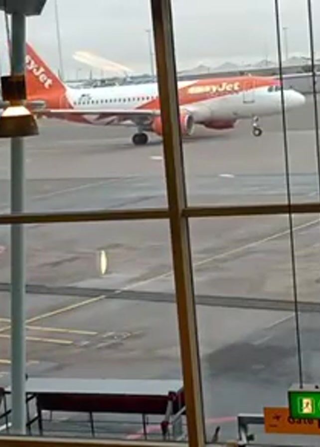 A stationary video shows an EasyJet airplane on the tarmac of an airport