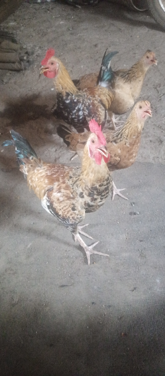 - "This image depicts five domestic chickens standing on a dusty, grey ground surface, likely in Adankolo, Nigeria" by FM-1zZbc2, licensed under CC BY 4.0