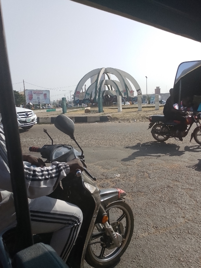 - "The image captures a sunlit roundabout in Dadi Riba, Nigeria, viewed from the interior of a vehicle" by FM-yuyTH3, licensed under CC BY 4.0