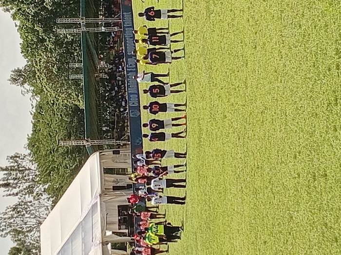 The image depicts an outdoor sporting event held on a sunny day in Kakamega, Kenya