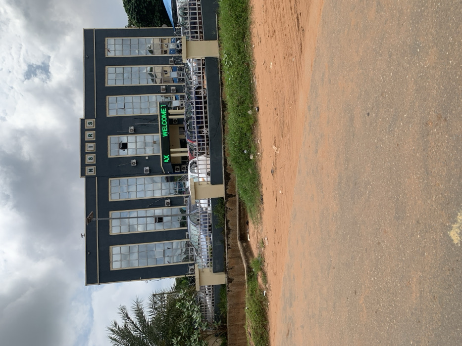 The image depicts a multi-story commercial building identified as "NSIRS" (Nasarawa State Internal Revenue Service) in Lafia, Nigeria, situated under an overcast sky
