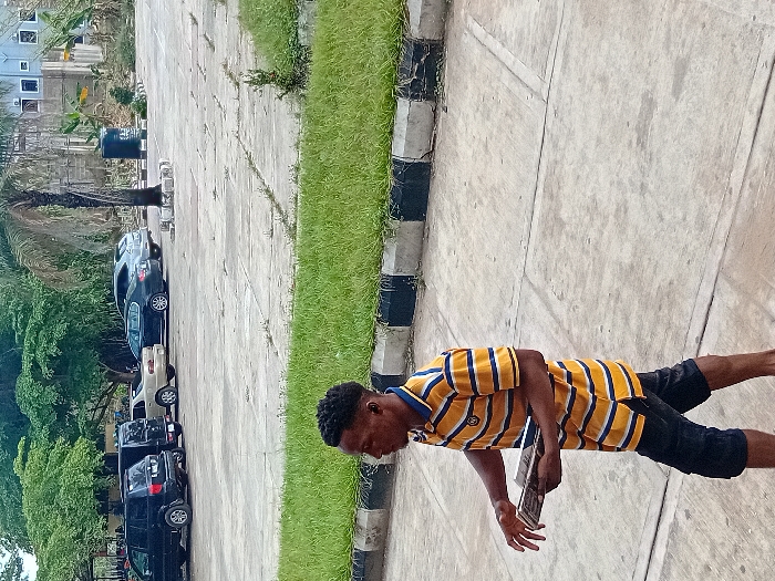 - "An outdoor scene in Egbagu, Nigeria, depicts a dark-skinned male subject, approximately 20-30 years old, walking from left to right across a paved concrete surface in the foreground" by FM-oXqq53, licensed under CC BY 4.0