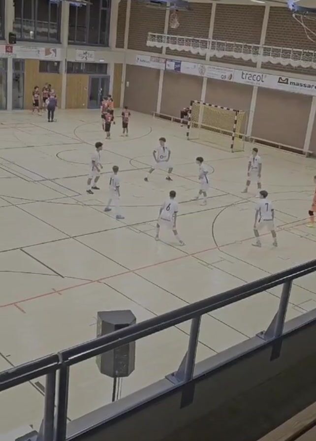 - "A wide shot from a balcony shows two teams playing futsal" by FM-n22Rc2, licensed under CC BY 4.0