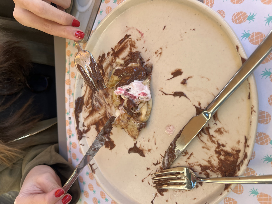 - "The scene depicts a close-up, overhead view of a partially consumed dessert at Pancrim, a creperie located in Porto, Portugal" by FM-bg2B92, licensed under CC BY 4.0