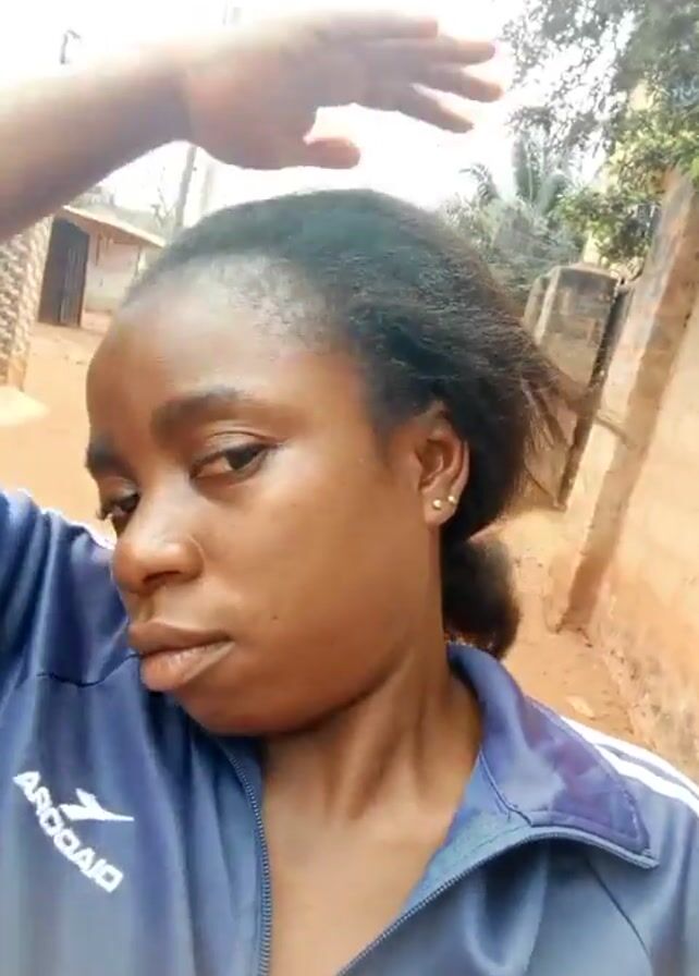A woman is standing outside in what appears to be a residential area