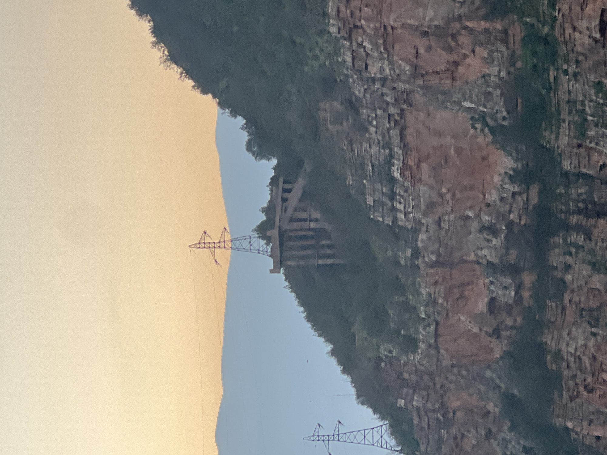 power transmission tower situated on the edge of a rocky cliff