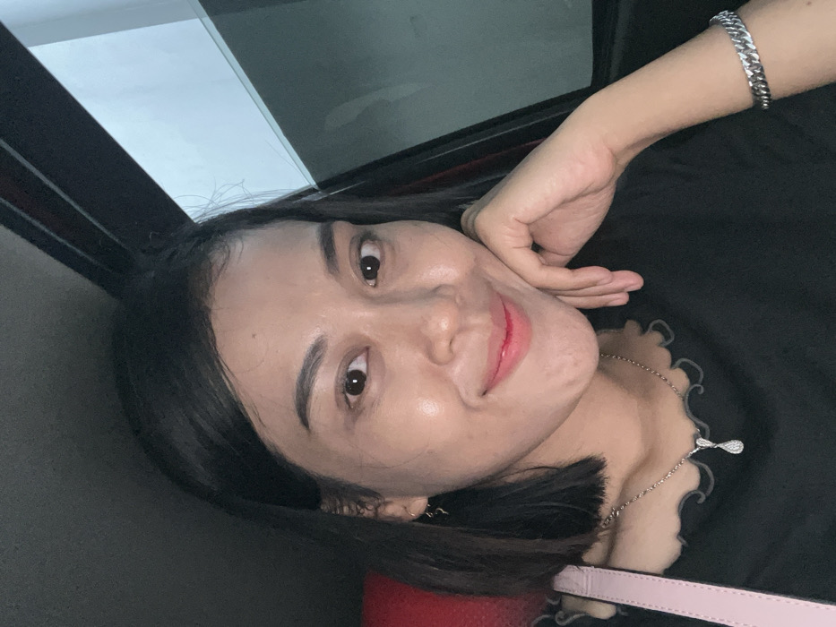 A woman poses for a selfie indoors. She is fair-skinned with dark, short hair, wearing a black top and a silver necklace. A silver bracelet adorns her wrist. Her expression is pleasant. A car window is visible in the upper left, and a pink strap hints at a bag. The scene is casually lit.