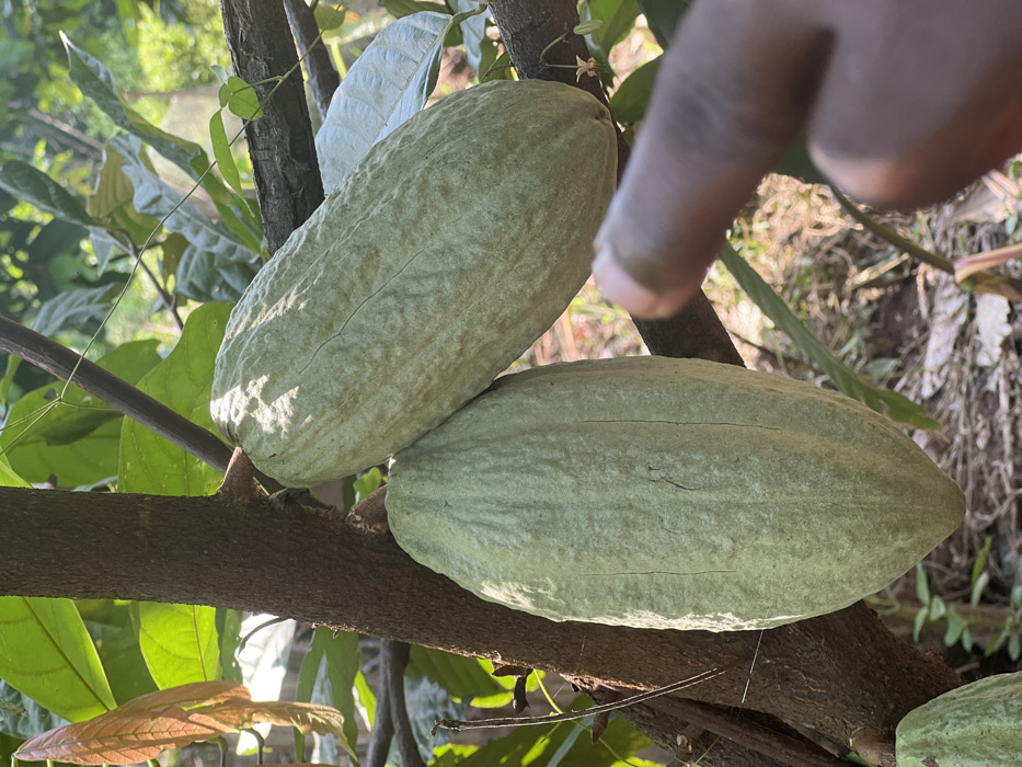 - "This image, captured in Leklebi Fiape, Ghana, depicts two unripe, light green cacao pods (Theobroma cacao) attached to a tree" by FM-6dzJp2, licensed under CC BY 4.0