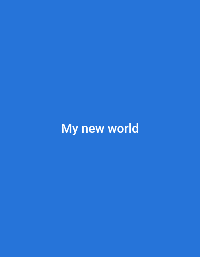 The image is a solid blue background with the text "My new world" in white centered in the lower half of the image
