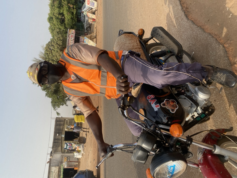 - "A person on a motorcycle wears an orange safety vest, hat, black mask, glasses, and dark shoes" by FM-nrUyz2, licensed under CC BY 4.0