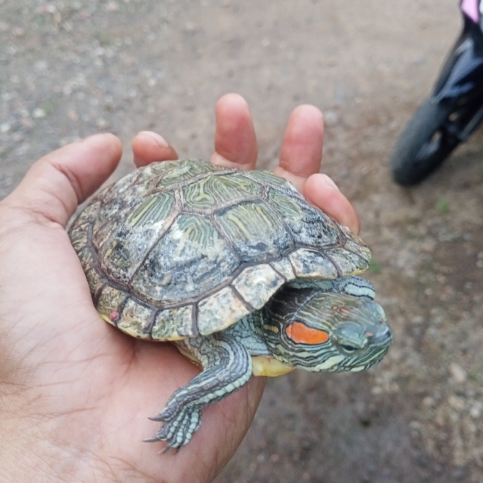 - "A juvenile Red-eared Slider turtle (Trachemys scripta elegans) is held in the open palm of a human left hand" by FM-cHJi83, licensed under CC BY 4.0