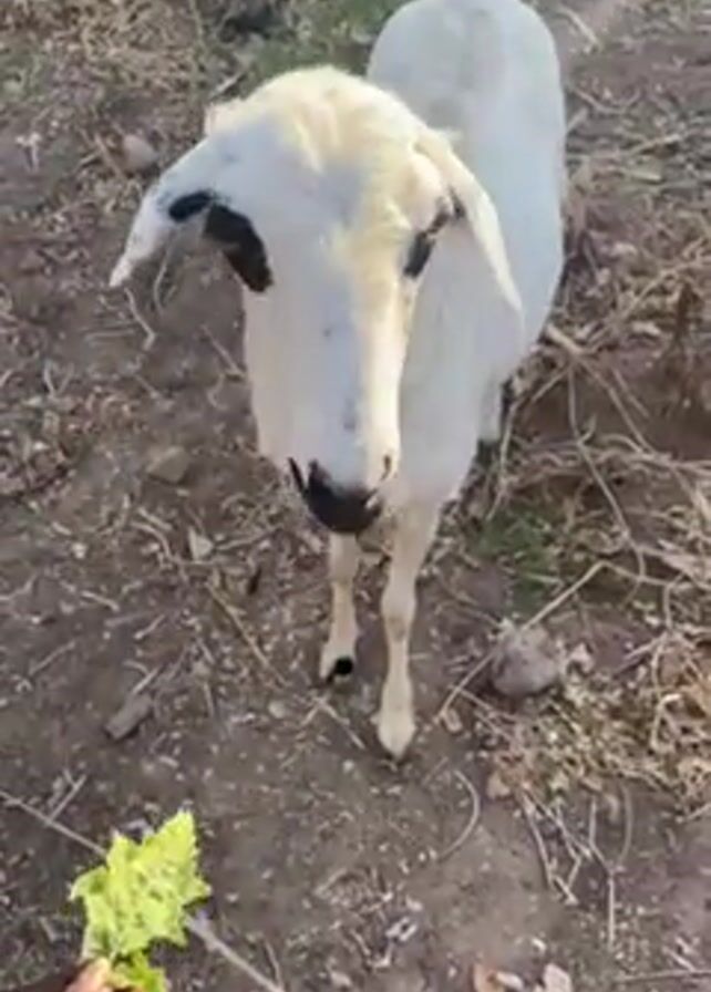 - "A medium-shot video shows a person holding a green leaf in their hand and feeding it to a young white sheep standing on dirt" by FM-8pMv02, licensed under CC BY 4.0
