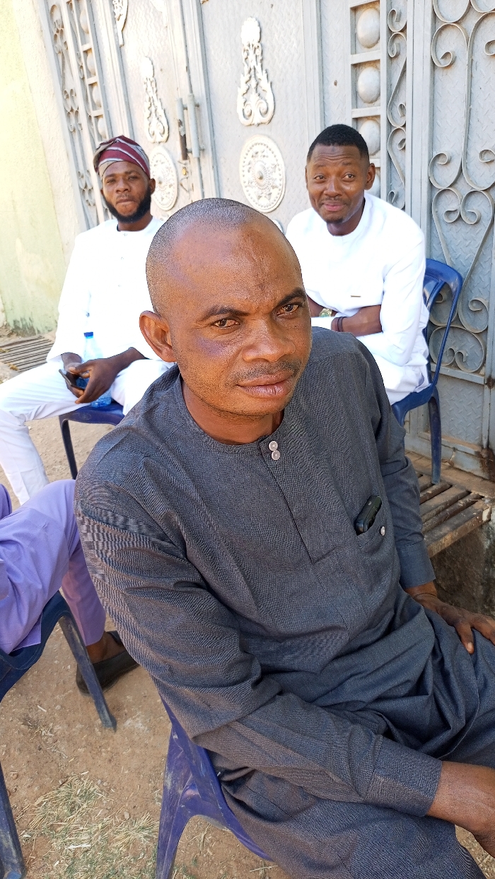 - "The scene depicts three adult males seated outdoors in Afaka, Nigeria, against a decorative metal gate under bright daylight" by FM-qi6h23, licensed under CC BY 4.0