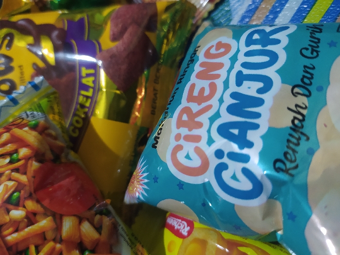 - "The image displays a close-up, high-angle view of several commercially packaged snack foods" by FM-SZSmO2, licensed under CC BY 4.0