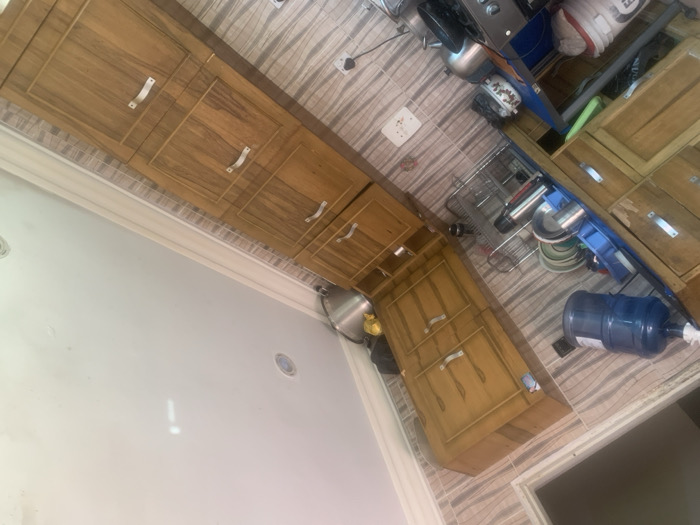 The image depicts an indoor utility or kitchen space located in Rukuba Road, Nigeria