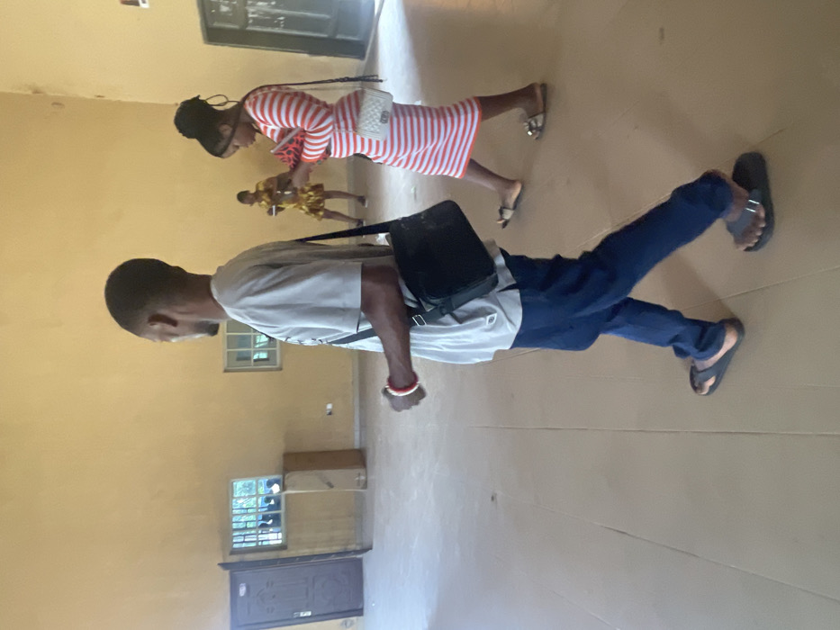 The image depicts an indoor scene within a large, spacious room in Okigwe, Nigeria