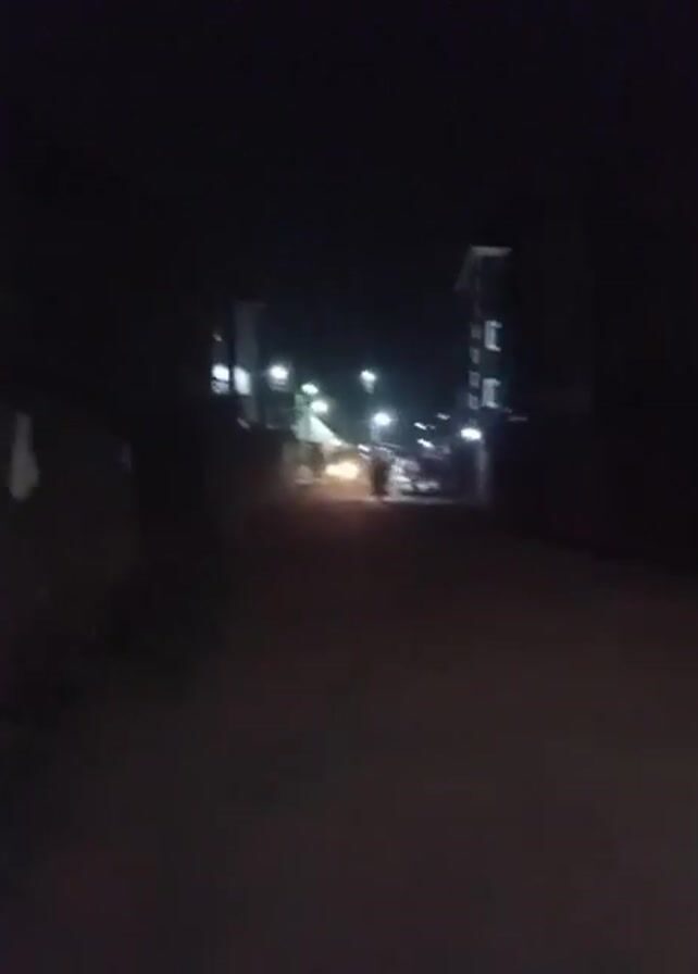 The video, taken at night, shows a narrow street illuminated by streetlights
