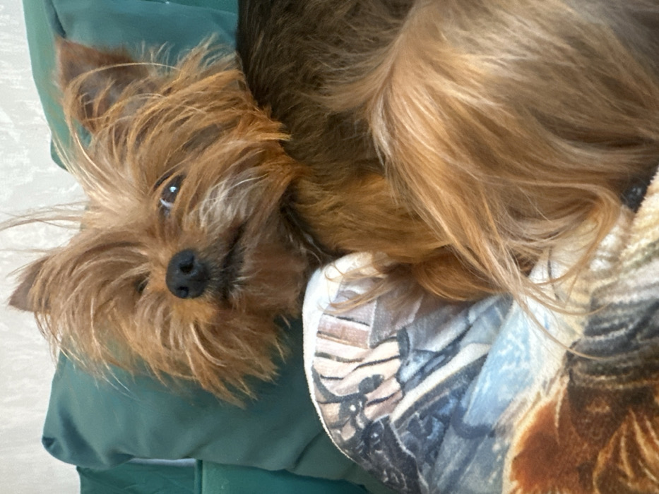 - "The image displays a close-up of a small, long-haired dog, resembling a Yorkshire Terrier, with predominantly reddish-brown fur and darker highlights on its body" by FM-GJEOS2, licensed under CC BY 4.0
