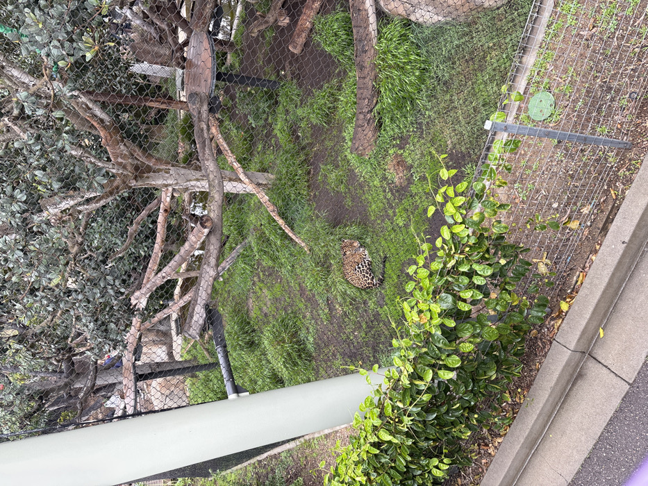 - "An aerial view depicts a leopard resting on green grass within an enclosure" by FM-97btd2, licensed under CC BY 4.0