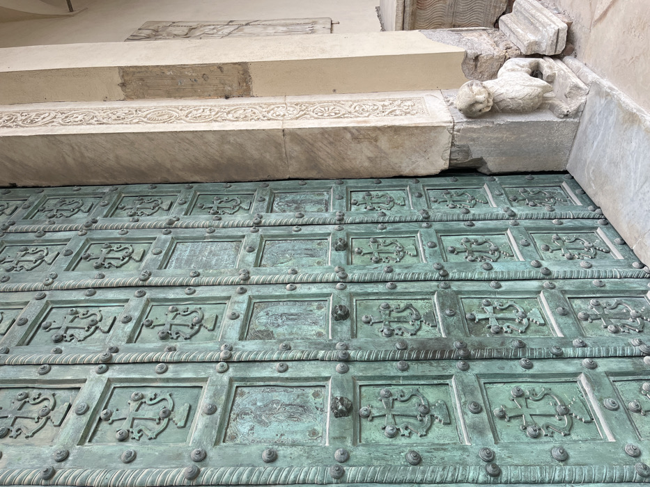 - "The image depicts a large, rectangular, verdigris-patinated bronze door, identified as the main entrance to the Salerno Cathedral (Duomo di Salerno) in Salerno, Italy" by FM-X3uic2, licensed under CC BY 4.0