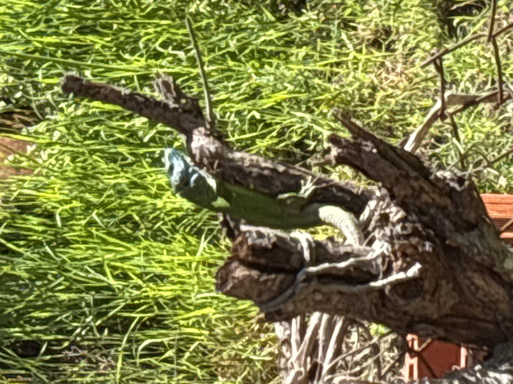 - "A green iguana is perched on a dead tree branch against a background of green vegetation" by FM-X6B8P2, licensed under CC BY 4.0
