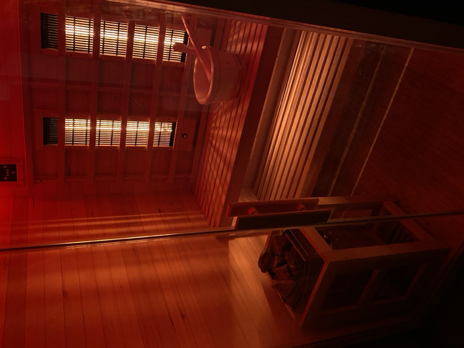 - "The image displays the interior of an empty wooden infrared sauna cabin located in Dobri dial, Bulgaria" by FM-PFEbq2, licensed under CC BY 4.0