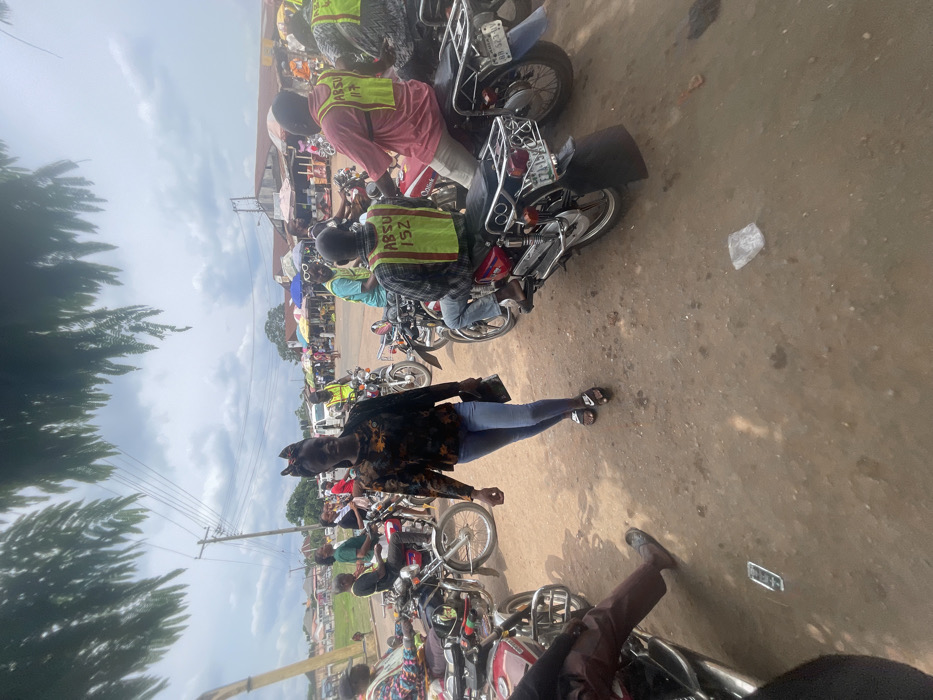 This image depicts a busy street scene in Umunekwu, Abia State, Nigeria