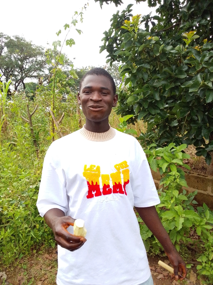 A young Black male, approximately 18-25 years old, stands outdoors in Agban, Nigeria, facing the viewer with a slight smile