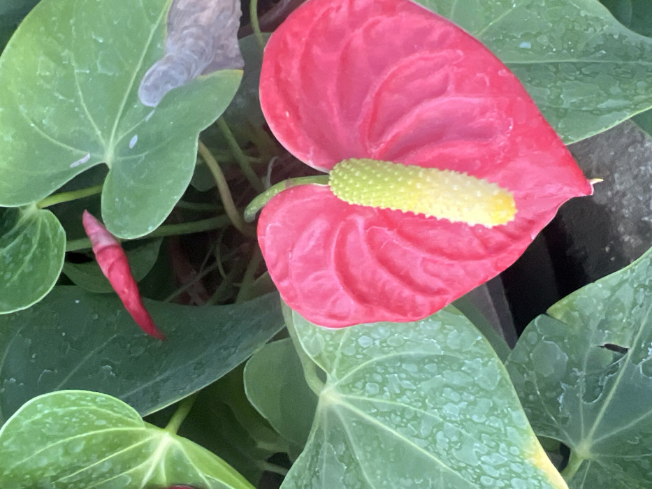 The image displays a close-up view of an Anthurium plant