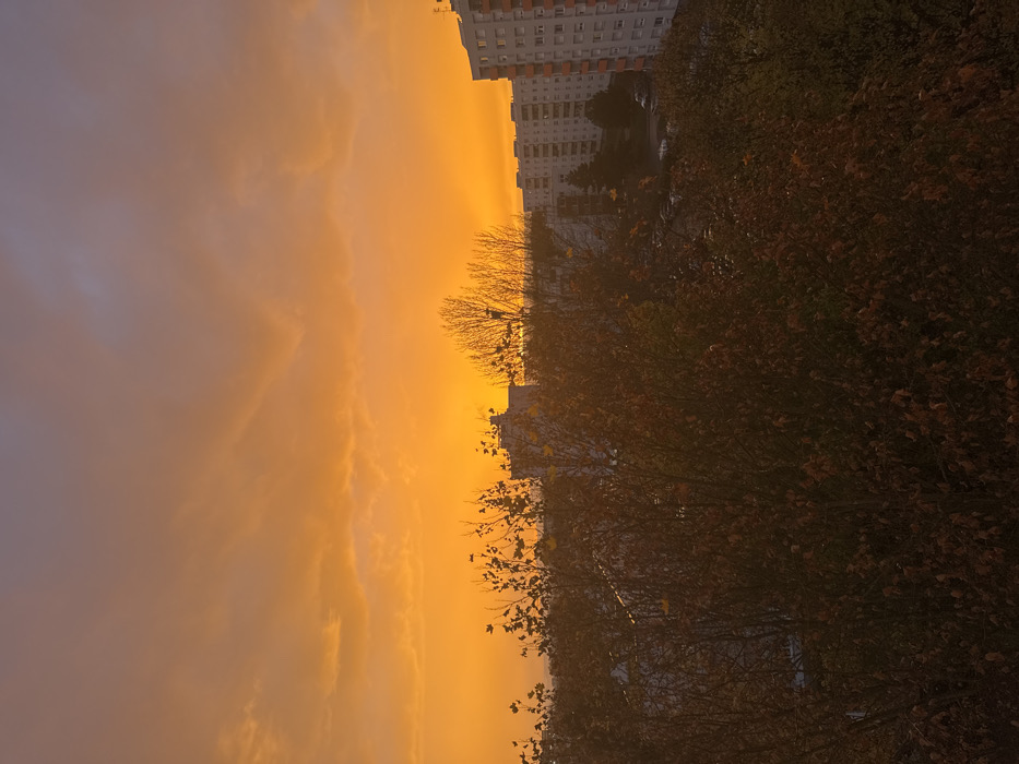 - "The image displays an urban landscape in Strasbourg, France, under an orange and yellow sky indicative of sunrise or sunset, with the upper portion featuring a purplish-grey cloud layer" by FM-pFdZm2, licensed under CC BY 4.0