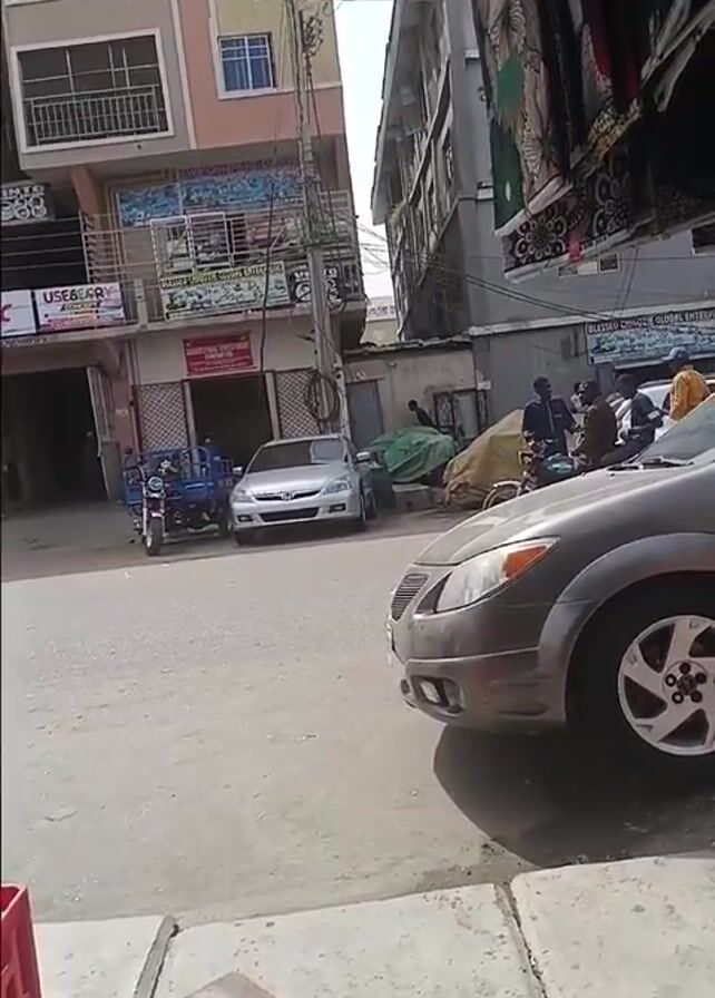 The video depicts a street scene in what appears to be a developing area, likely in Africa, based on the infrastructure and clothing of the people
