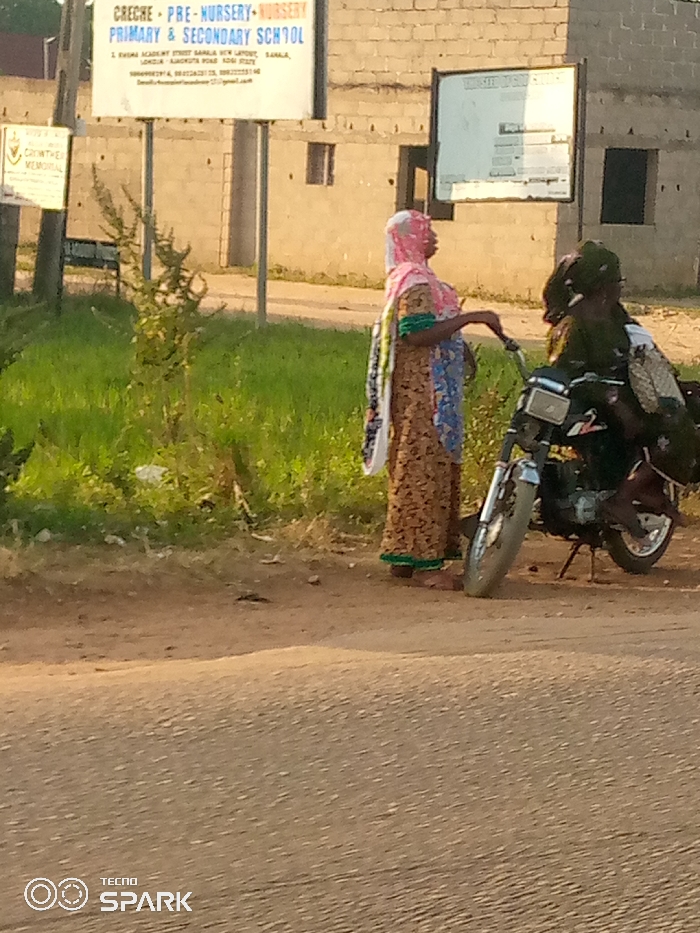 This image captures a roadside scene in the city of Ajaokuta, Kogi State, Nigeria, along Ajaokuta Road, specifically near the K