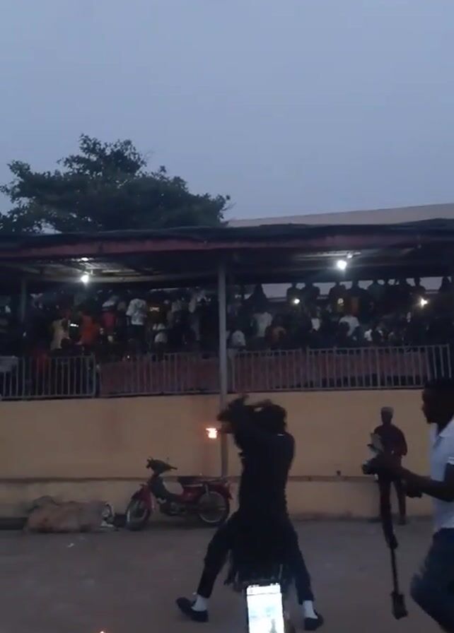 performance taking place outdoors in front of a crowd