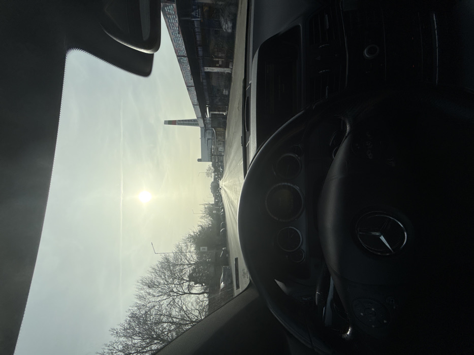 - "The image depicts a first-person perspective from inside a vehicle, specifically a Mercedes-Benz, given the visible logo on the steering wheel, looking forward through the windshield" by FM-zCTPO2, licensed under CC BY 4.0