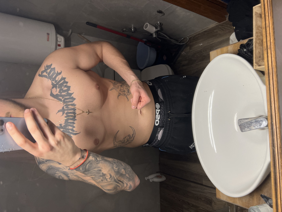 A male individual is depicted from the mid-thighs up, taking a mirror selfie in a bathroom located in Varna, Bulgaria