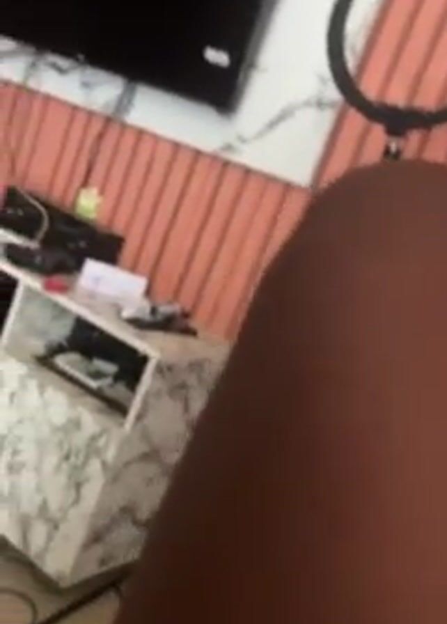 The video begins with a close-up of a brown leg, then pans out to show a living room
