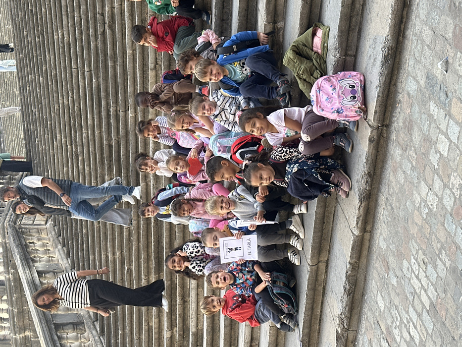 - "This image depicts approximately 25 to 30 young children, likely pre-school or early elementary age, seated in multiple rows on the wide stone steps of a prominent staircase in Girona, Spain, commonly identified as the Cathedral steps" by FM-vN6QQ2, licensed under CC BY 4.0