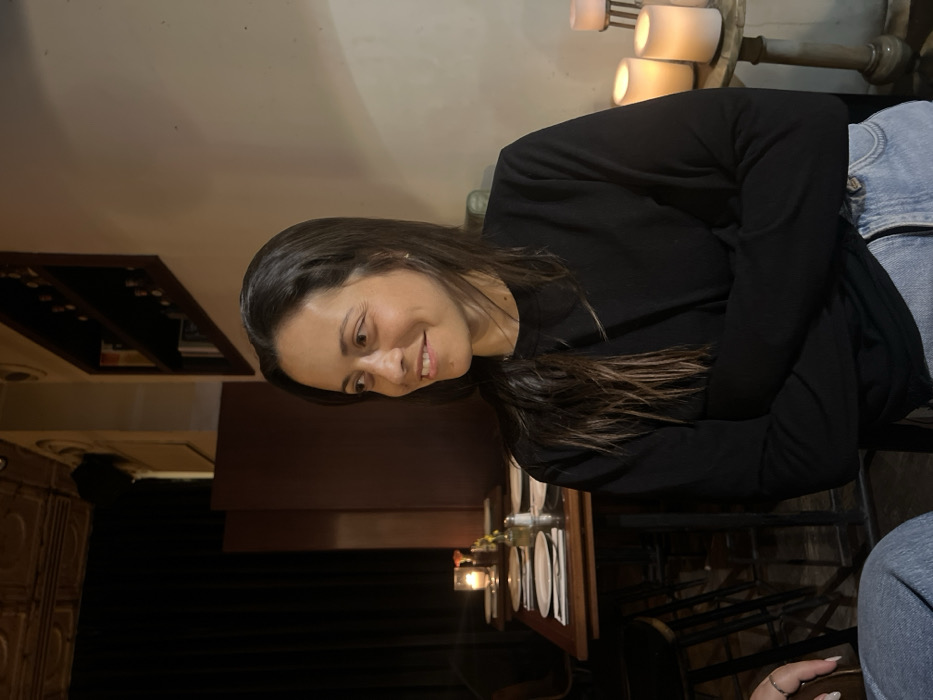 A female individual is seated indoors at a restaurant or bar in Tel Aviv, Israel