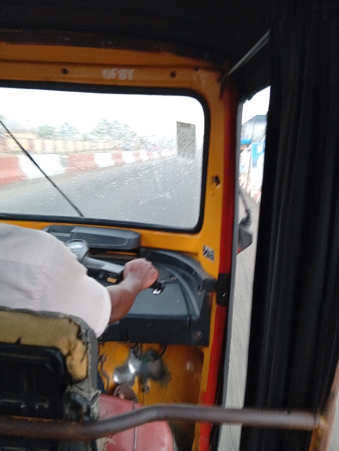 - "The image captures a forward-facing view from inside a yellow and black commercial tricycle, commonly known as a Keke Napep, operating in Uyo, Nigeria" by FM-7gsdz2, licensed under CC BY 4.0