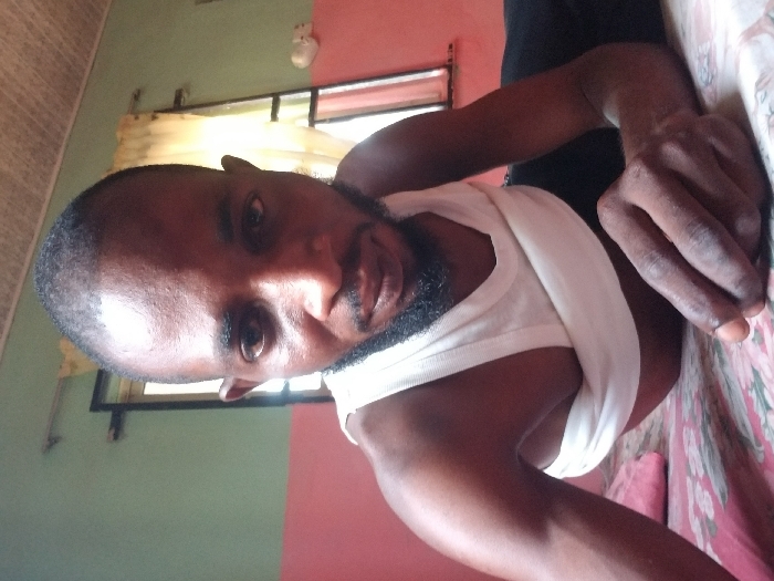 A man with a trimmed beard and dark hair is reclining on what appears to be a bed. He is wearing a white undershirt. The background features a room with green and red walls and a window covered by sheer curtains. The image seems to be taken at an odd angle.