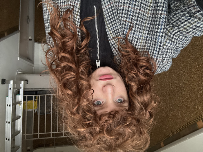 - "A woman with voluminous coppery-red curly hair, blue eyes, and a nose piercing is depicted in a medium close-up, gazing directly forward" by FM-LpuiE2, licensed under CC BY 4.0