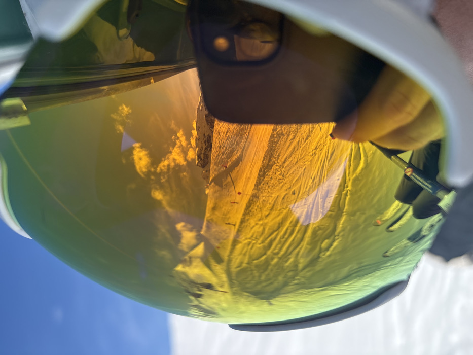 - "The image displays a close-up of a white ski helmet equipped with a highly reflective, yellow-orange tinted goggle lens" by FM-CQFcW2, licensed under CC BY 4.0