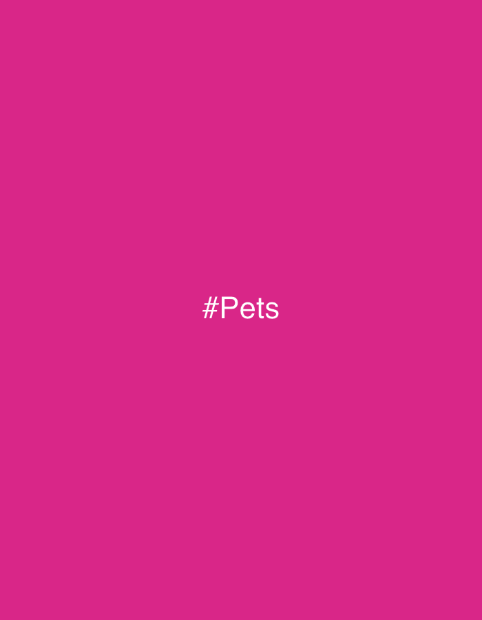 A pink screen displays the text "#Pets" in white, sans-serif font