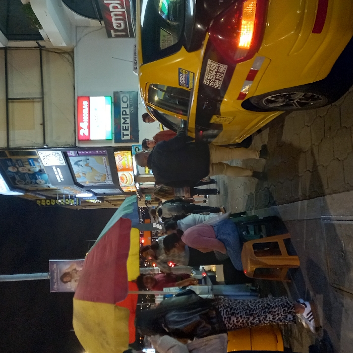 - "A yellow taxi sits at the curb on a bustling street" by FM-xYWjj2, licensed under CC BY 4.0