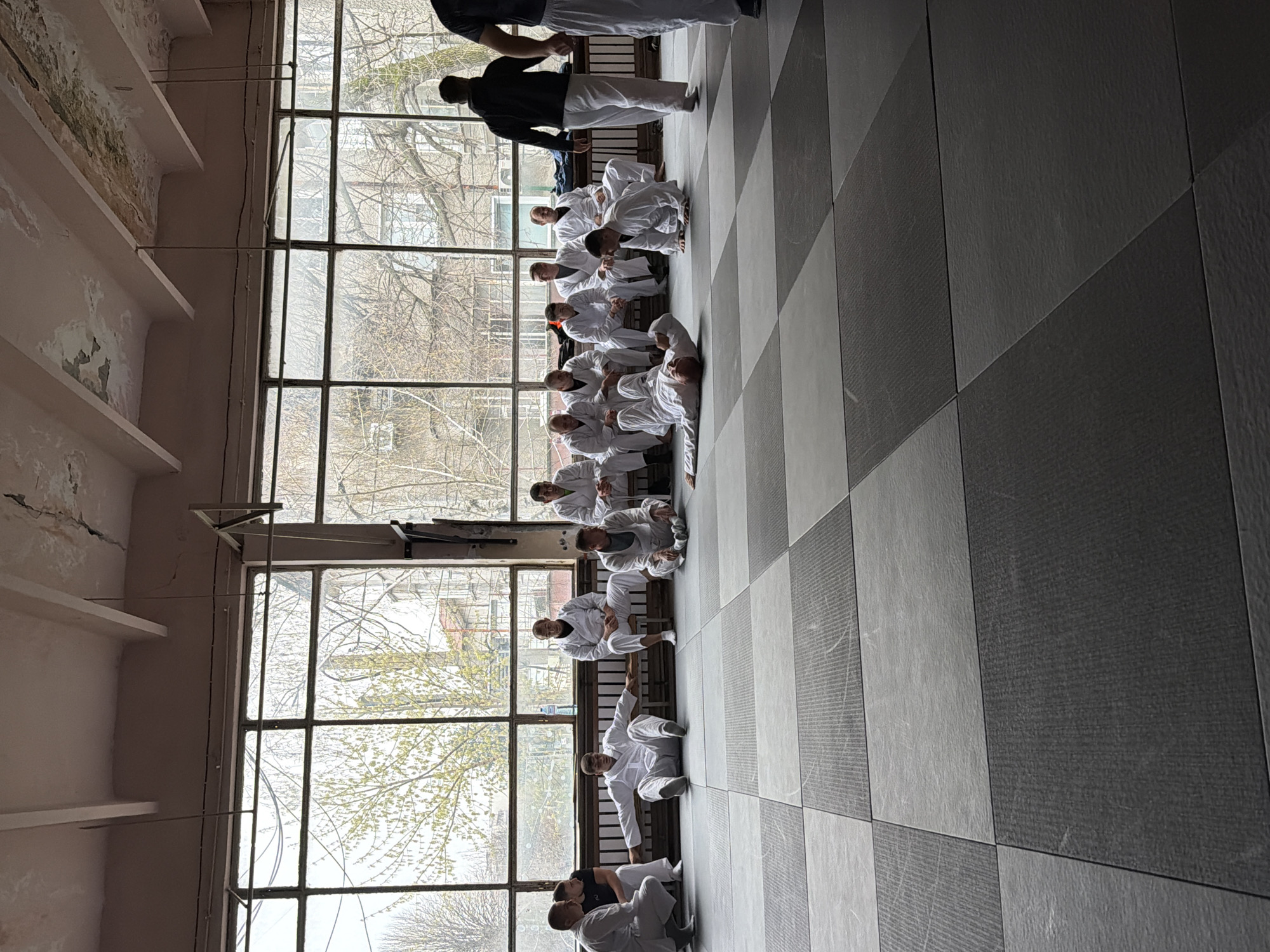- "A group of about 15 people are in a room, likely a dojo, with a large window showing trees and buildings, possibly in Pazardzhik, Bulgaria" by FM-Oqxk22, licensed under CC BY 4.0