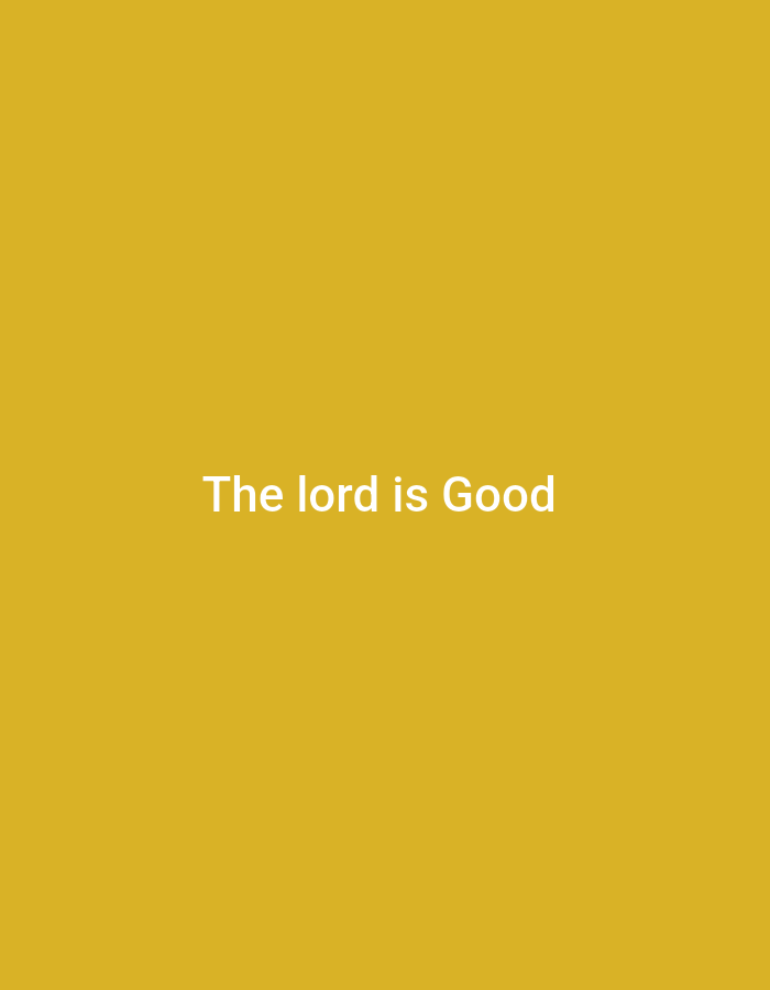 A mustard yellow background dominates the image. Centered on the canvas are the words "The lord is Good" in a clear, white sans-serif font. The text is positioned roughly in the middle of the frame, with ample empty space above and below. The overall composition is simple, focusing on the message itself.
