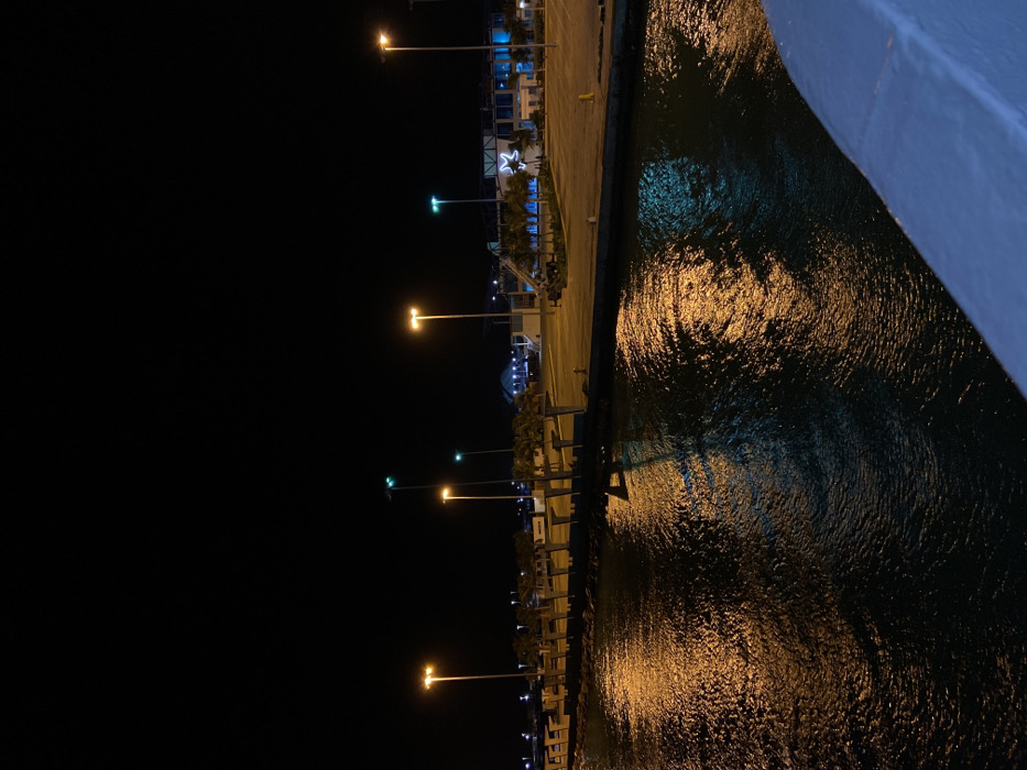 - "A night scene shows a dark body of water reflecting street lights and shoreline structures" by FM-49R4h1, licensed under CC BY 4.0
