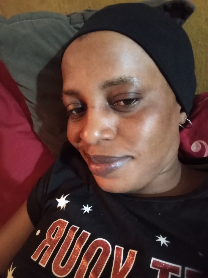 The scene depicts an individual, likely an adult female, reclining indoors in Narayi, Nigeria