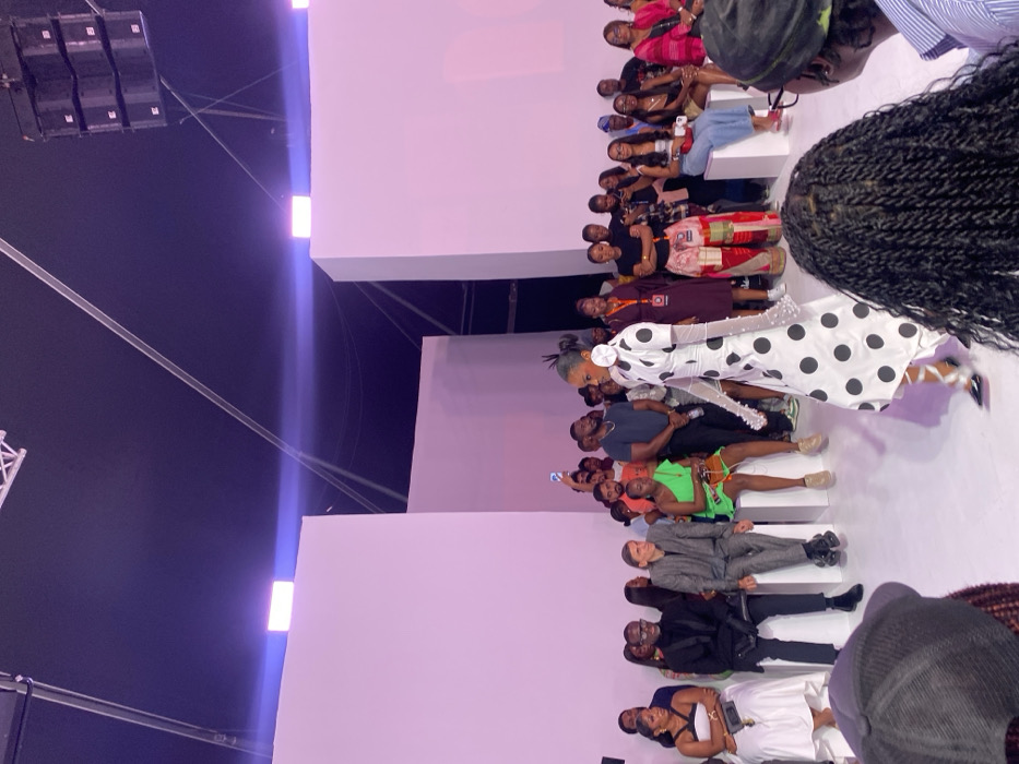 The image displays an indoor fashion event occurring in Itirin, Nigeria